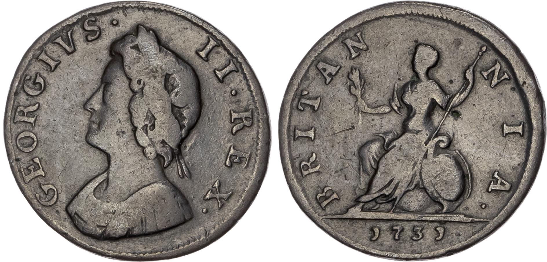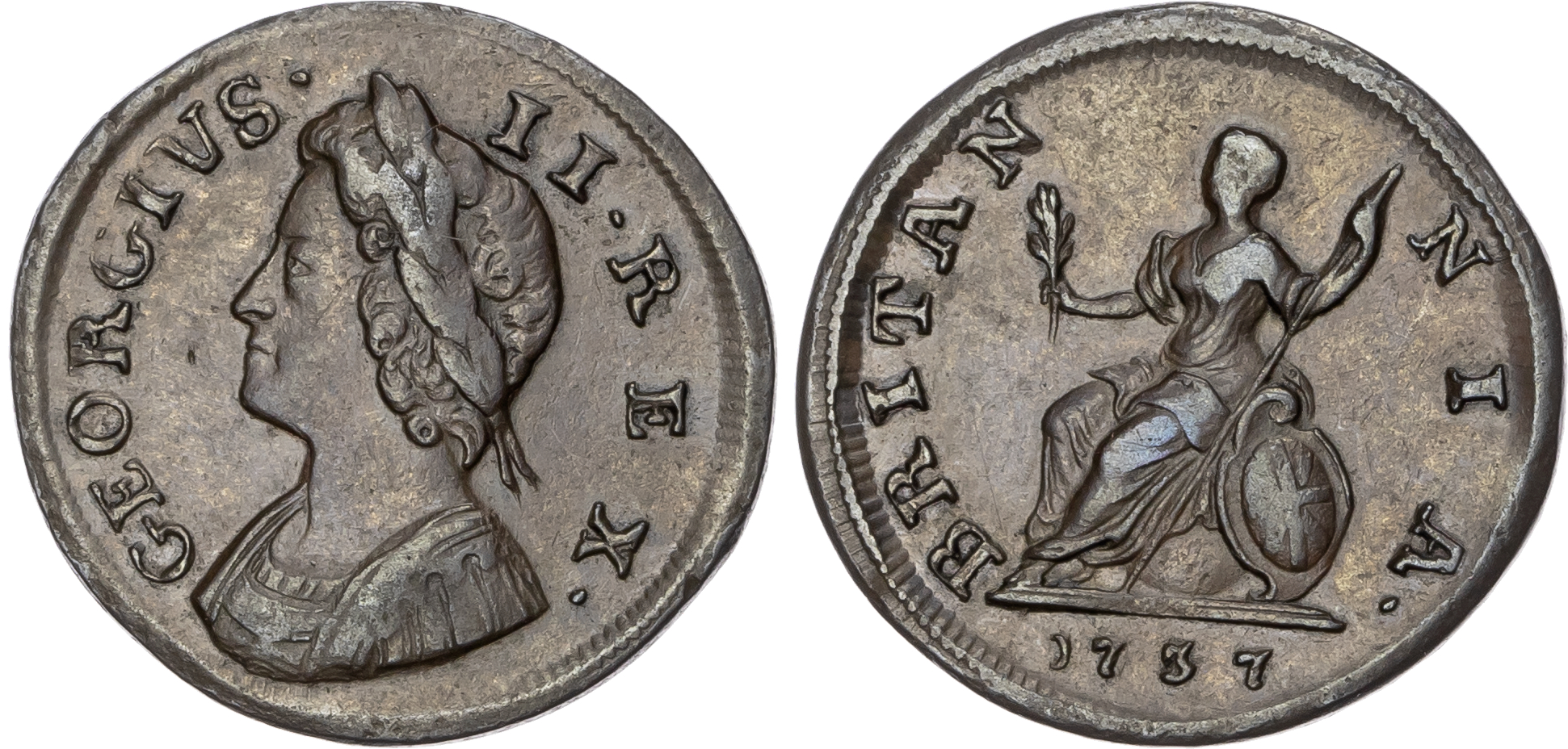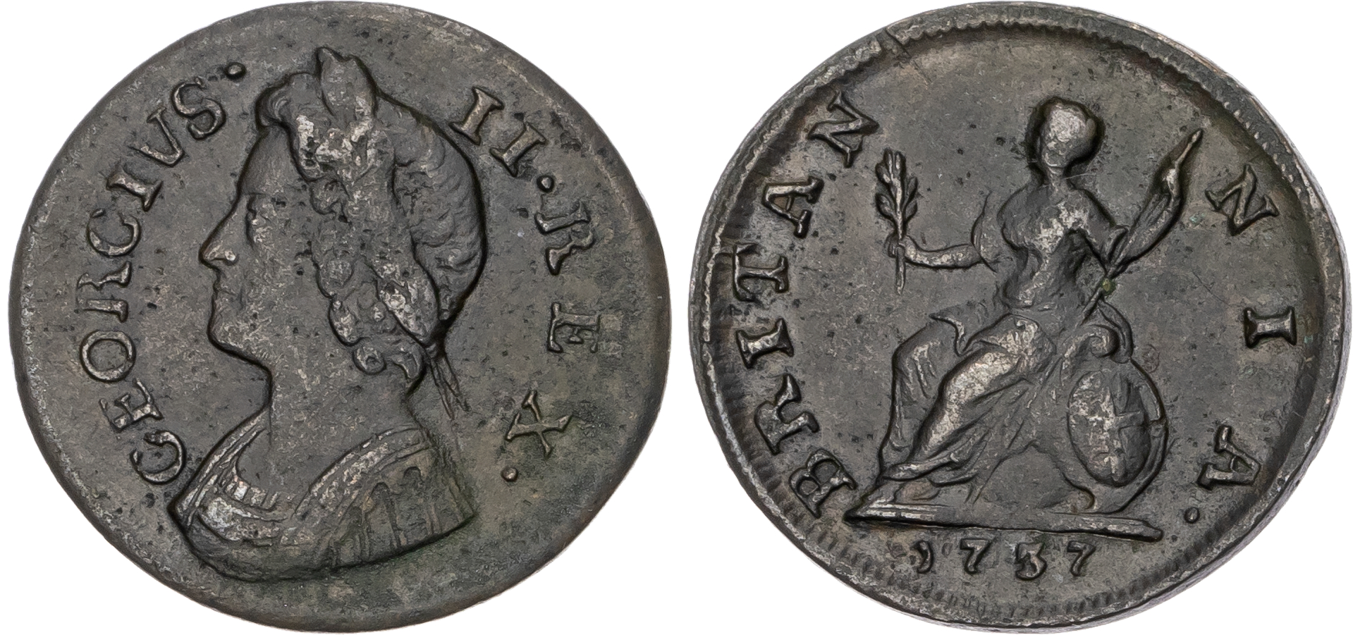 Click here to view picture 1737 NEW Small Date. Very uphill date. BMC 866. S3720. Bold GVF £125.00
