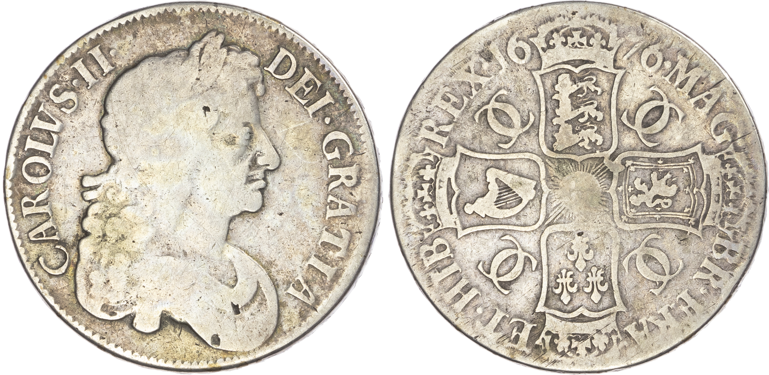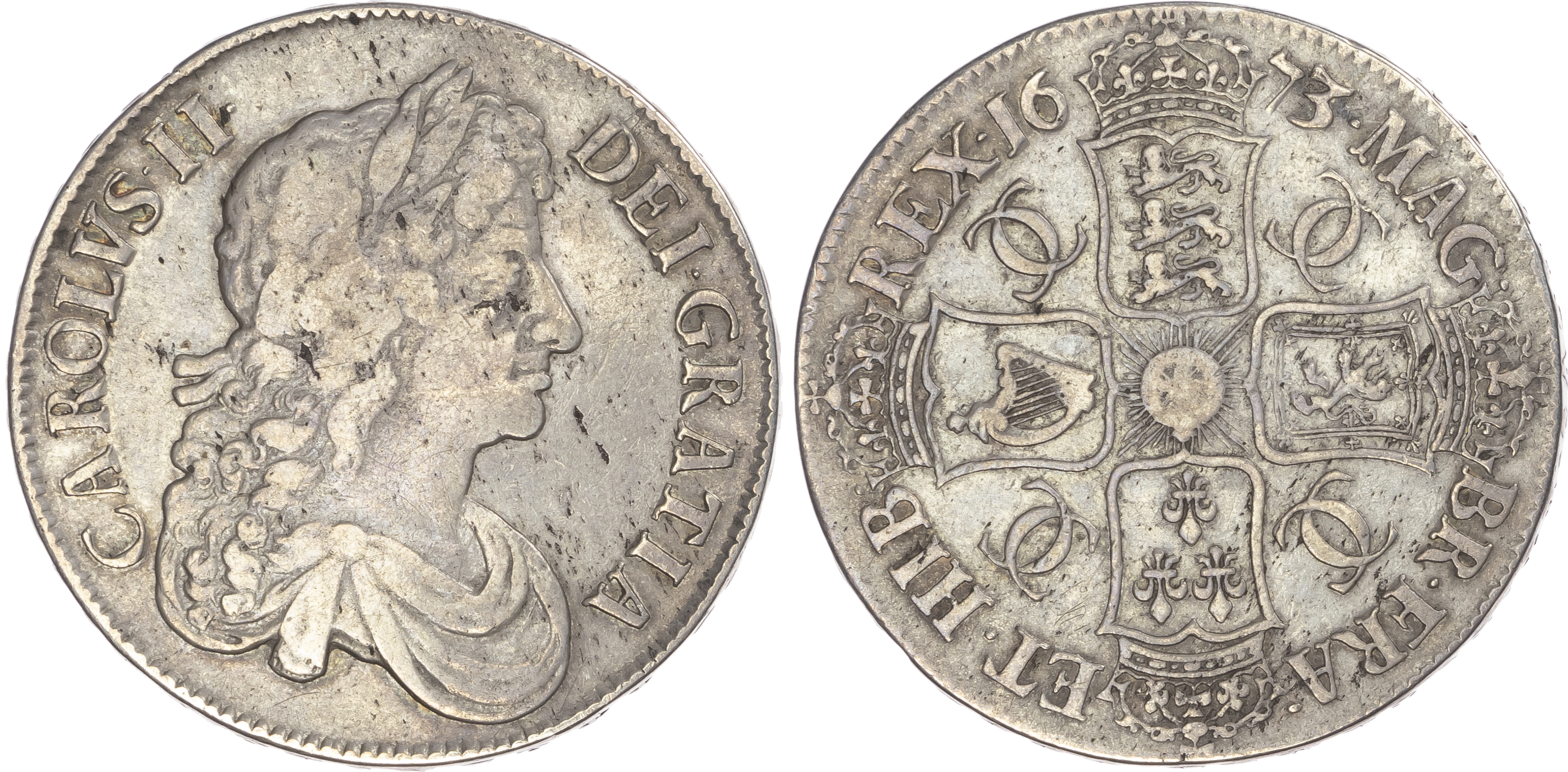 Click here to view picture 1673 NEW Charles II. Third dr. bust. V.QVINTO. S3358. GF £195.00