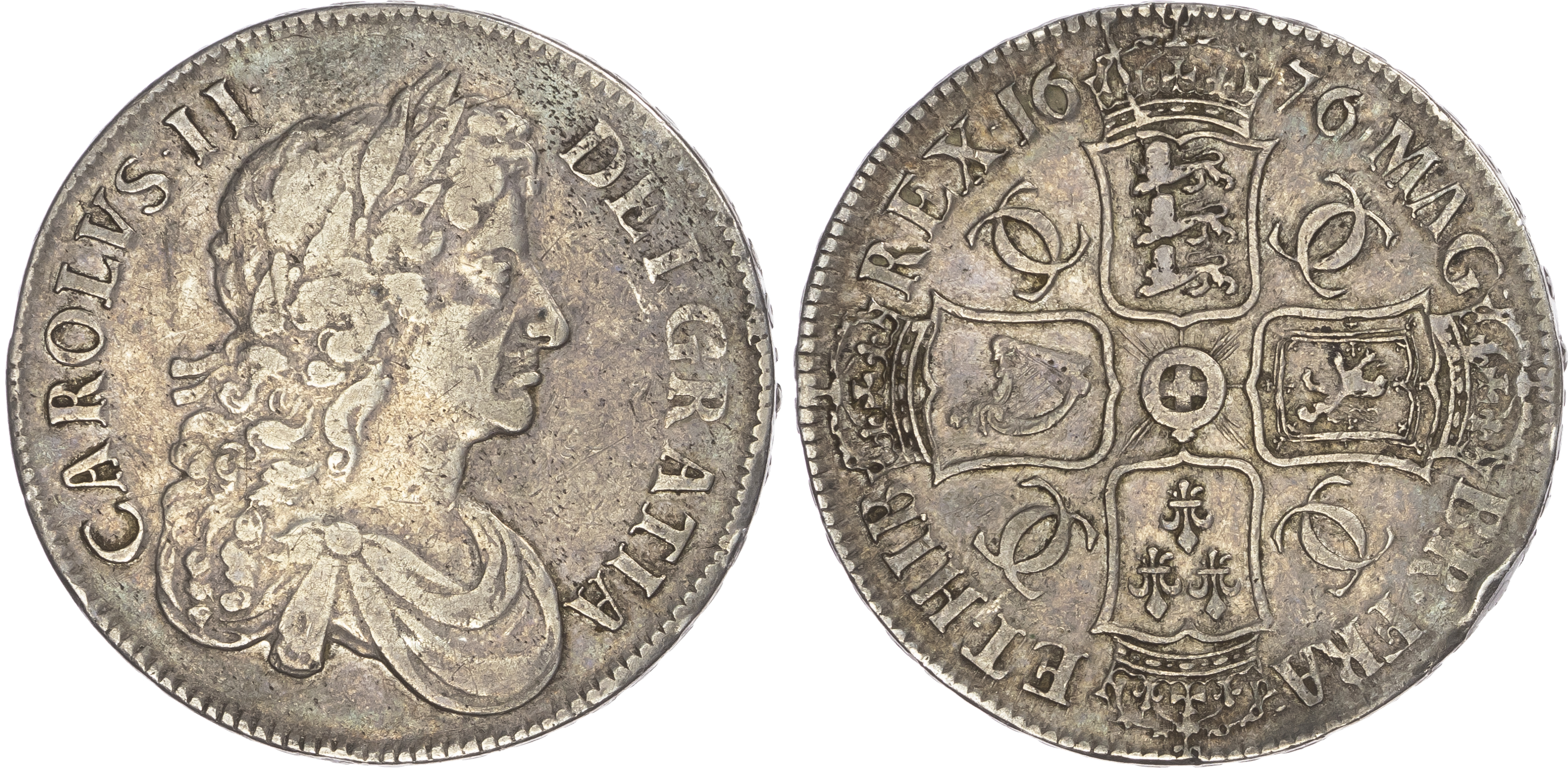 Click here to view picture 1676 NEW Charles II Crown. Third dr. bust. V. OCTAVO. Bull 397. ESC 51. S3358. Fine at most £150.00