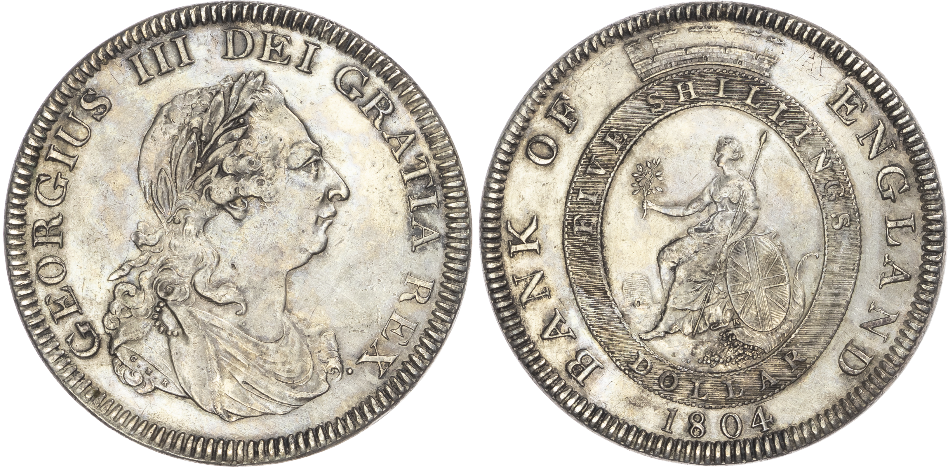 Click here to view picture 1804 NEW Bank of England Dollar. With Stop After REX. S3768. GEF, toned £550.00