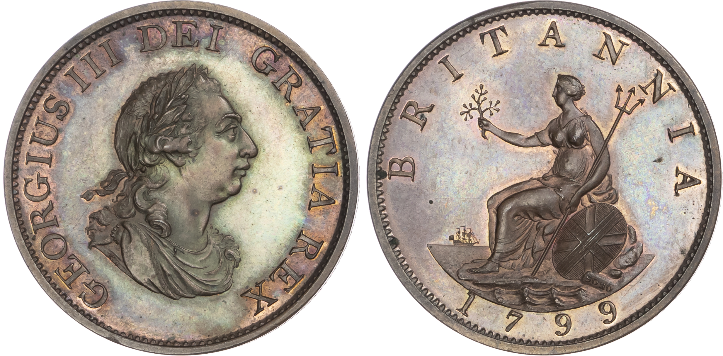 Click here to view picture 1806 George III Bronzed Proof. BMC 1363. Pleasing As Struck, some original colour £450.00