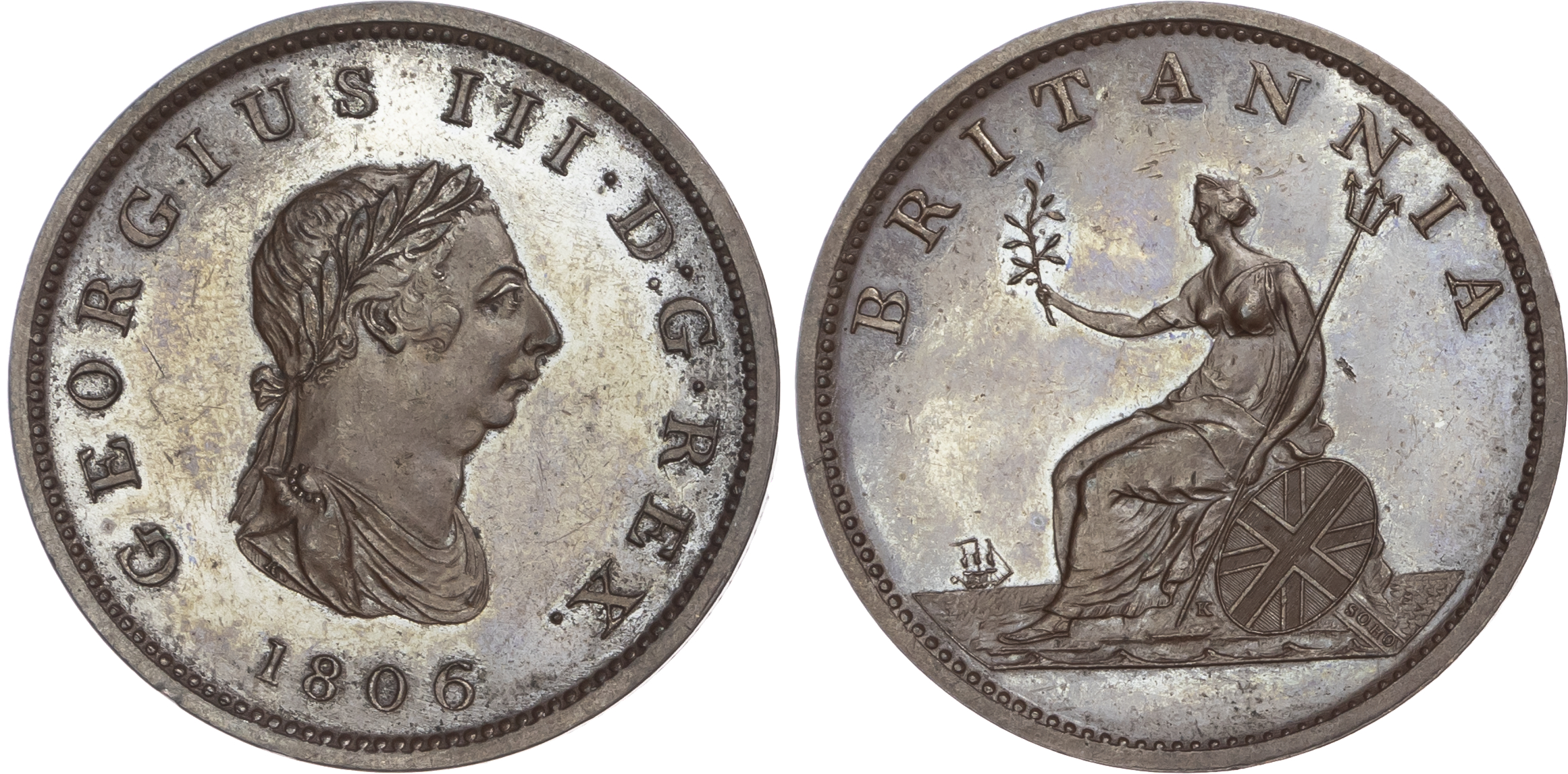 Click here to view picture 1806 George III Bronzed Proof. BMC 1363. Superb As Struck, small toning spot on obverse £350.00