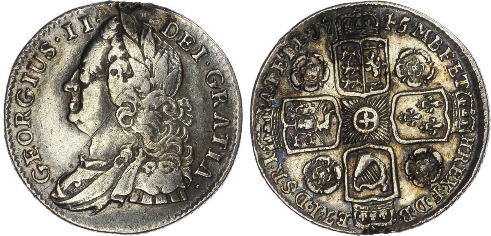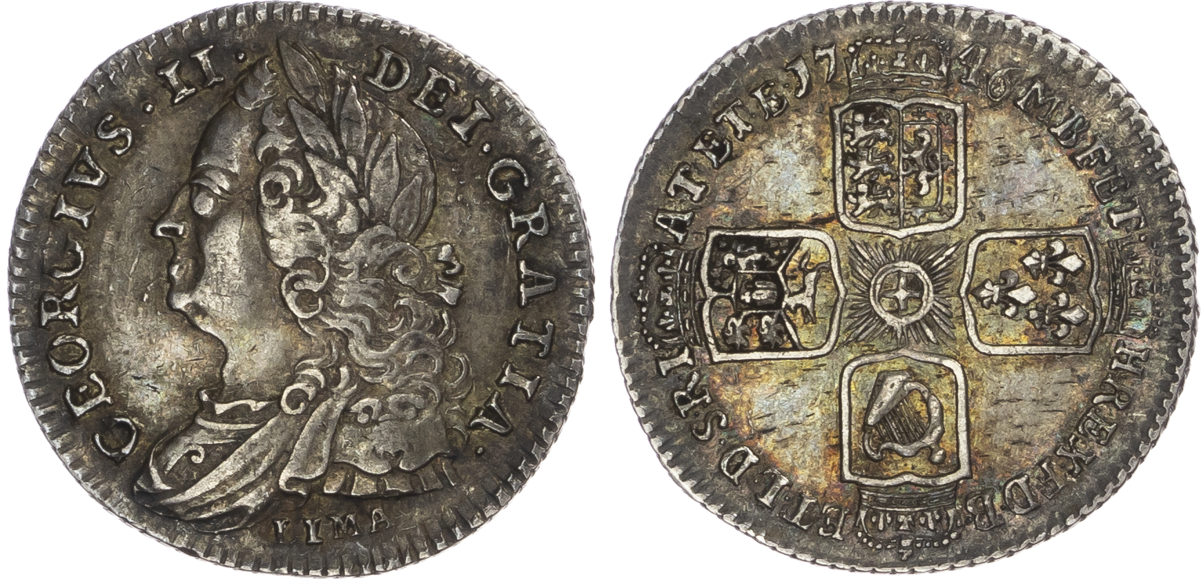 Click here to view picture 1746/5 NEW George II. LIMA below bust. Angles plain. S3710A. ESC 1618A (R2). GVF, toned £175.00