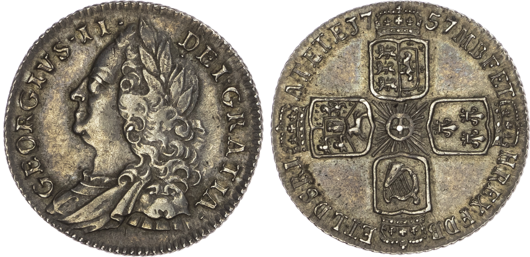 Click here to view picture 1757 NEW George II. Angles plain. S3711. ESC 1622. GVF or better £75.00