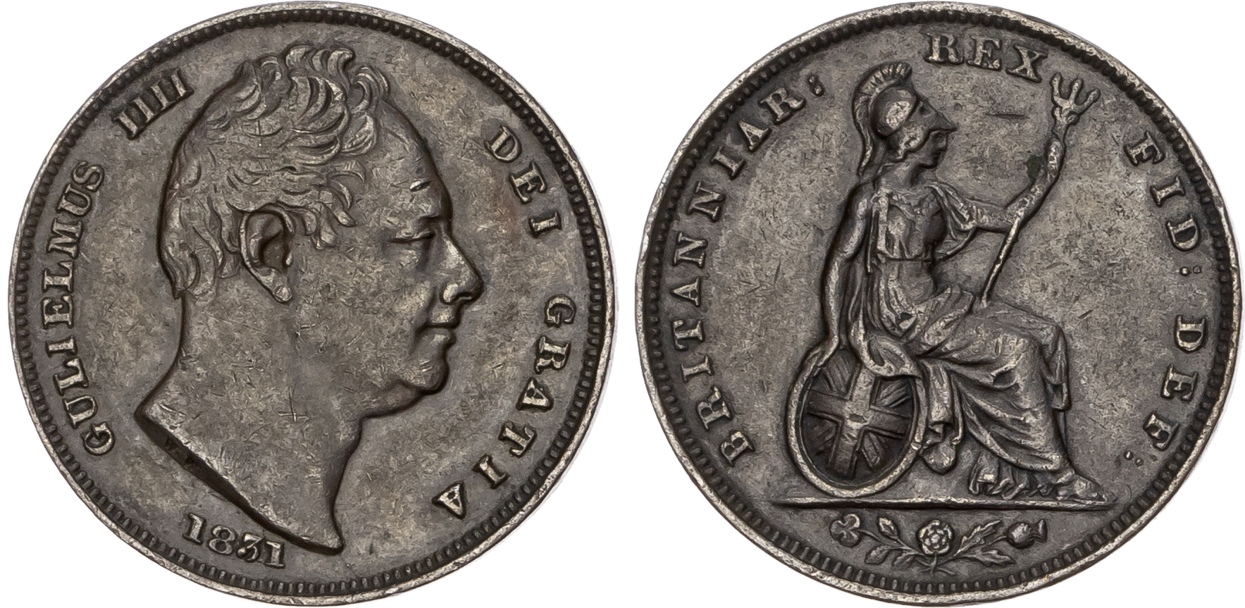 Farthings were current from 13th April 1831. A popular series for collectors as there are only five different dates to collect.